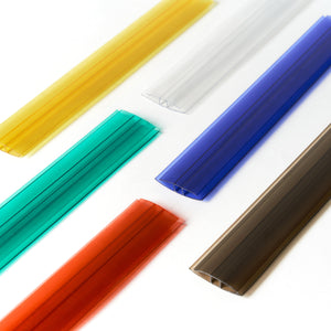 H-connector connects twin wall or solid polycarbonate sheets together and prevents it from detaching and breaking down when drilled.